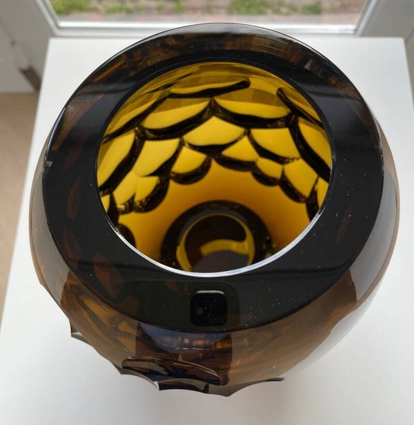 Unique glasobject " BEEHIVE" van de Tsjechische glaskunstenaar Petr Karizek. Mondgeblazen, handgevormd, geslepen en gepolijst. Aan de onderzijde gesigneerd met een diamantpen.